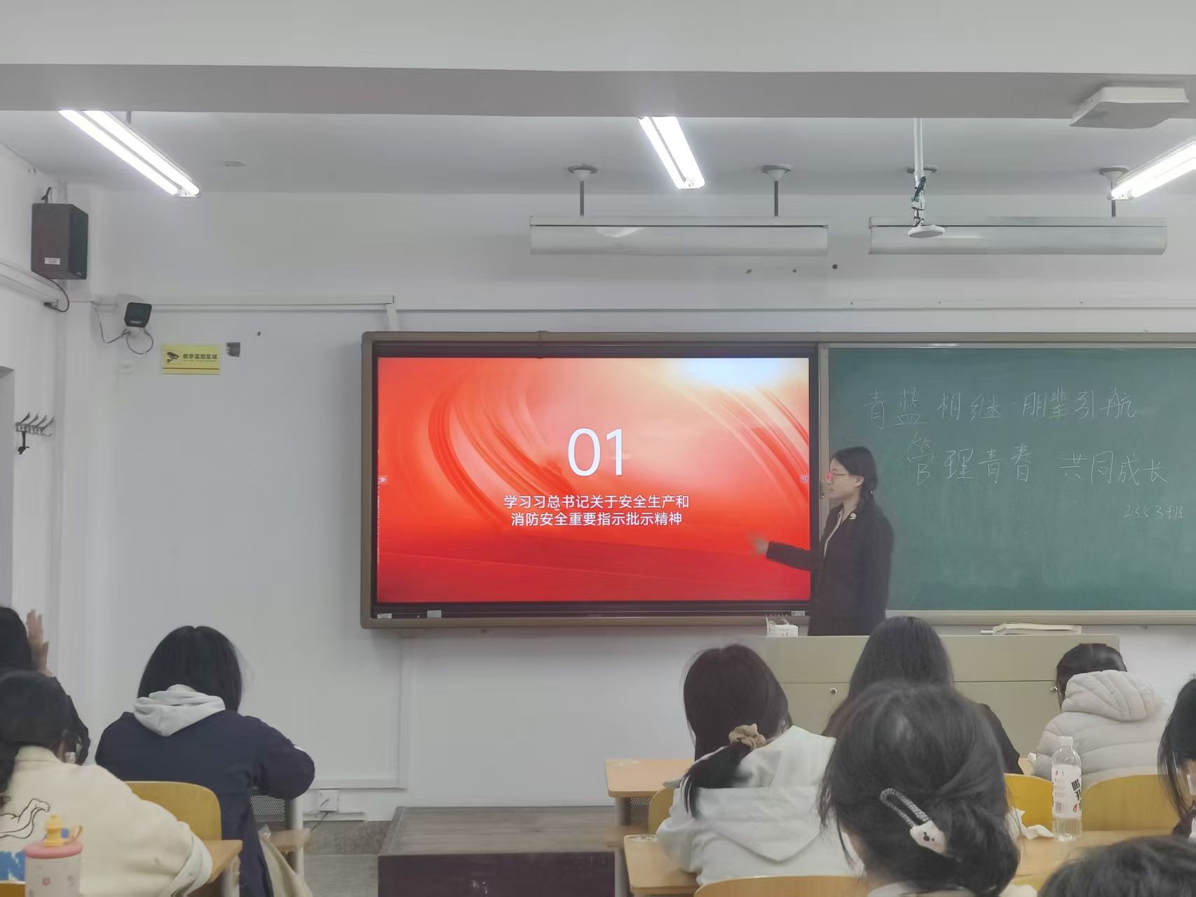 在活动中,各班级涌现出诸多亮点。例如,2023级51班的魏晴玉同学结合管理学知识,分享大学目标设定、时间管理等实操经验;吕祯雪同学剖析邪教本质与电诈防范策略,倡导宿舍安全自查;邢彩琴同学讲述抗战英雄事迹,阐释伟大抗战精神。2023级52班的卫俊杰同学作为发展对象,分享医保专业学习与党员标准践行经验;吴研同学探讨党的宗旨在新时代的深化与实践。2023级53班通过红色教育、邪教剖析和消防知识问答游戏,提升学生风险应对能力和心理调适能力。2024级50班的罗晓宇、郝宝仪和伊品怡同学分别分享党校体会、消防安全知识和多维安全防范策略。2024级51班解读校园安全风险与红色精神传承,形成安全韧性共识。2024级52班通过发言稿形式,强调自我管理方法、安全防线构建及抗战精神传承。