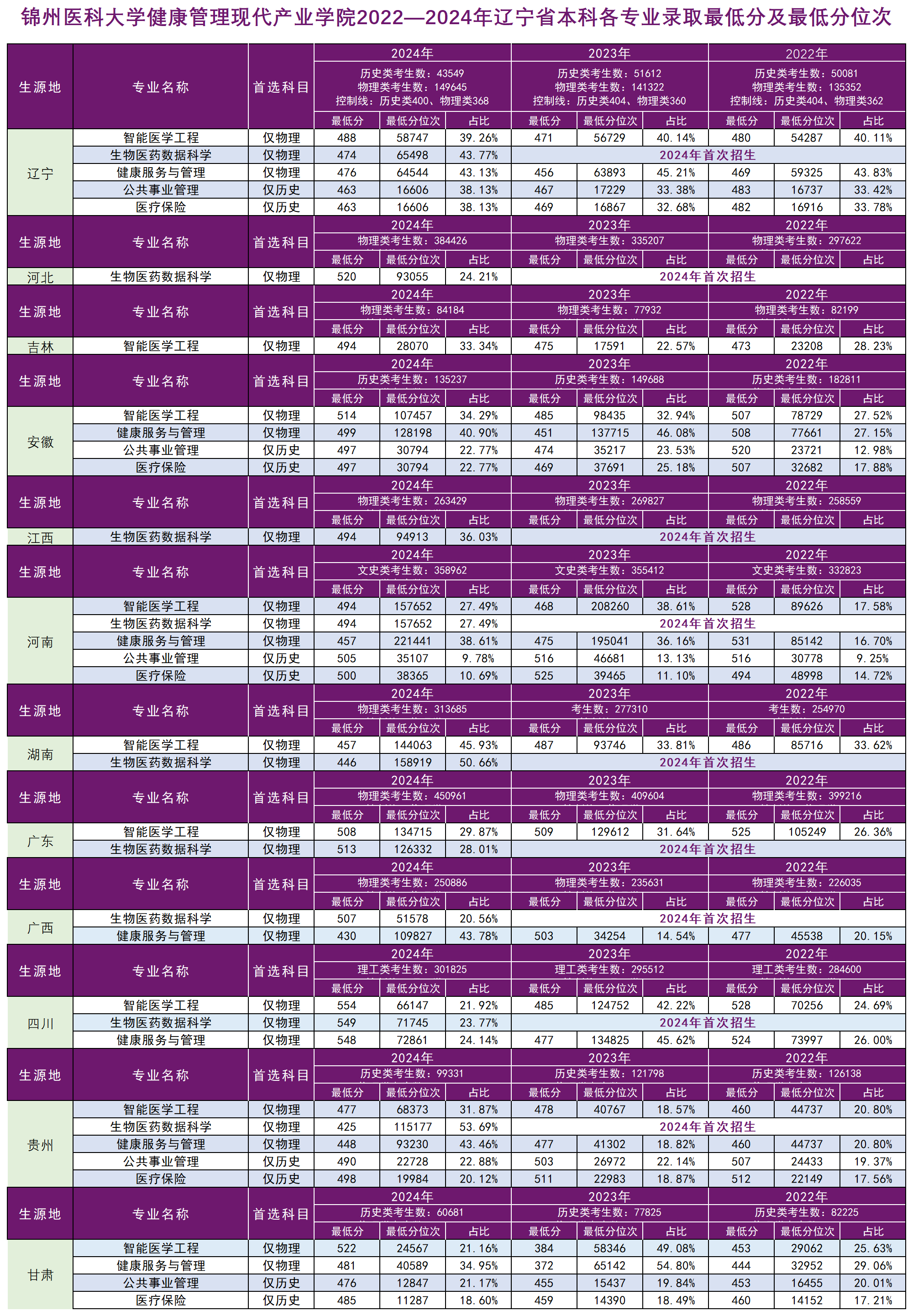 jnh今年会网站健康管理现代产业学院2022—2024年辽宁省本科各专业录取最低分及最低分位次