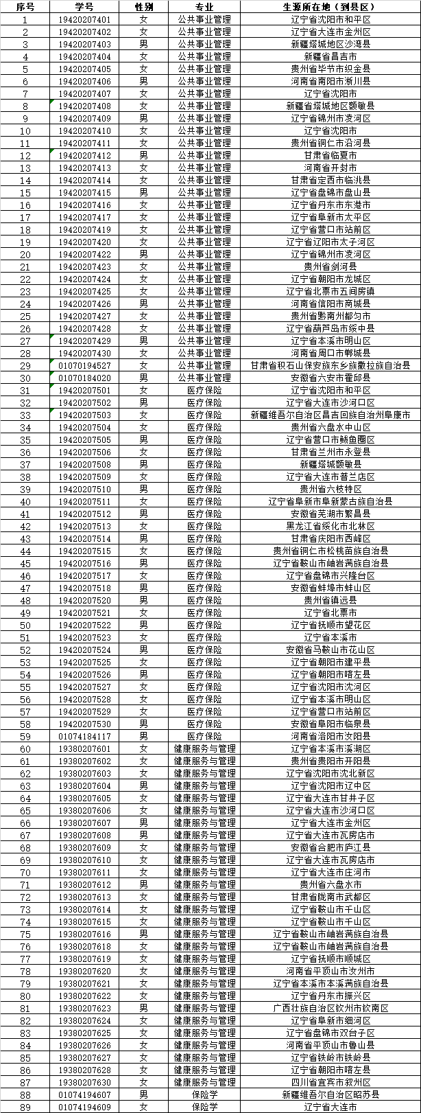 健康管理现代产业学院2024届毕业生信息