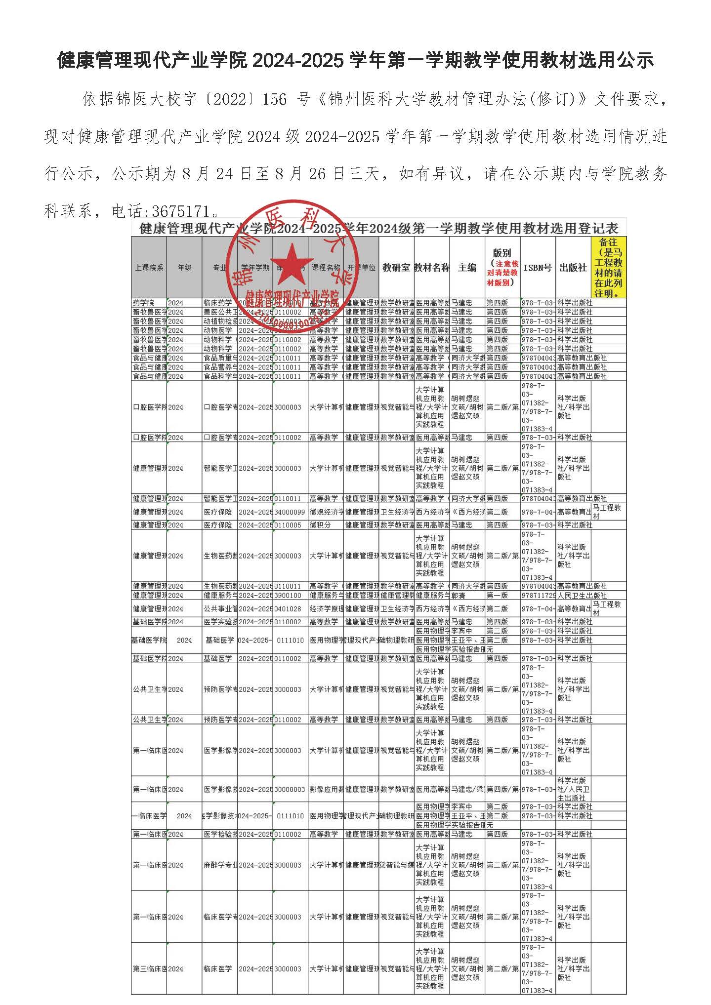 学院 2024-2025 学年第一学期教学使用教材选用公示
