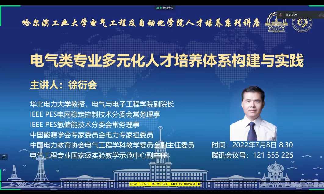 7月8日上午,受哈尔滨工业大学电气工程及自动化学院邀请,新浦金350vip官方副院长徐衍会以腾讯会议方式,为哈工大电气工程及自动化学院开展了人才培养方案讲座。哈尔滨工业大学电气工程及自动化学院院长王淑娟,院长助理于艳君及电气专业相关老师参加了交流会。