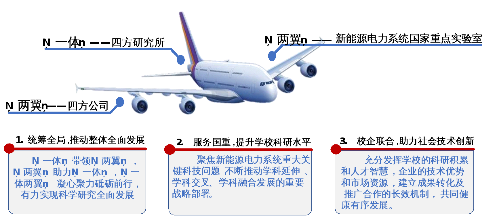 作为党建引领下的科研先锋团队,四方研究所致力于解决国家关键技术难题,积极带头申报国家自然科学基金、国家重点研发计划等国家重大科技项目,以重责任、高标准的态度有效完成科研任务。为不断推进科研创新成果,四方研究所打造“一体两翼”协同布局。“一体”即以四方研究所为主体,“两翼”分别指新能源电力系统国家重点实验室(简称“国重实验室”)和北京四方继保自动化股份公司(简称“四方公司”)。