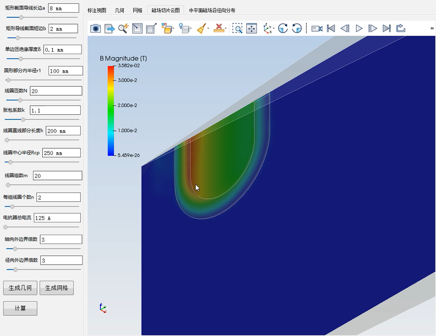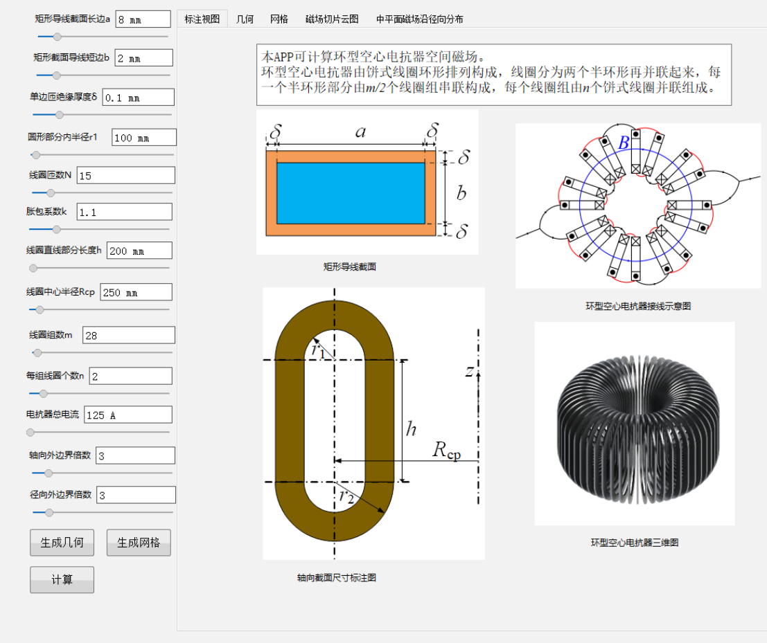 在导师崔翔教授的悉心指导下,韩释瑶同学结合硕士研究课题,采用国产仿真平台Simdroid,开发了一款环型空心电抗器磁场分析APP。