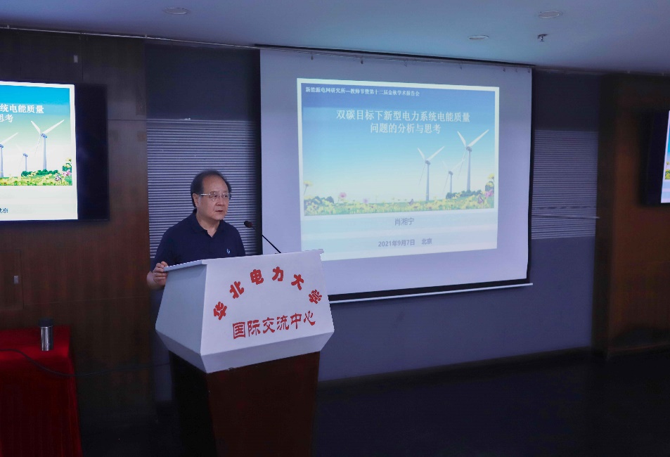 肖湘宁教授以“双碳目标下新型电力系统电能质量问题的分析与思考”做了首场报告。肖湘宁教授以双碳目标为背景,向我们讲述了当代电力系统向以新能源为主体的新型电力系统的转型与发展态势,梳理了构建新型电力系统的三层网架结构和源网荷储一体化核心基础问题,最后总结了新型电力系统所面临的电能质量问题并给出了宝贵意见。报告结束之后现场师生积极提问,通过肖老师的讲解,大家对双碳目标下的新型电力系统及其相关问题有了更加深刻的认识。