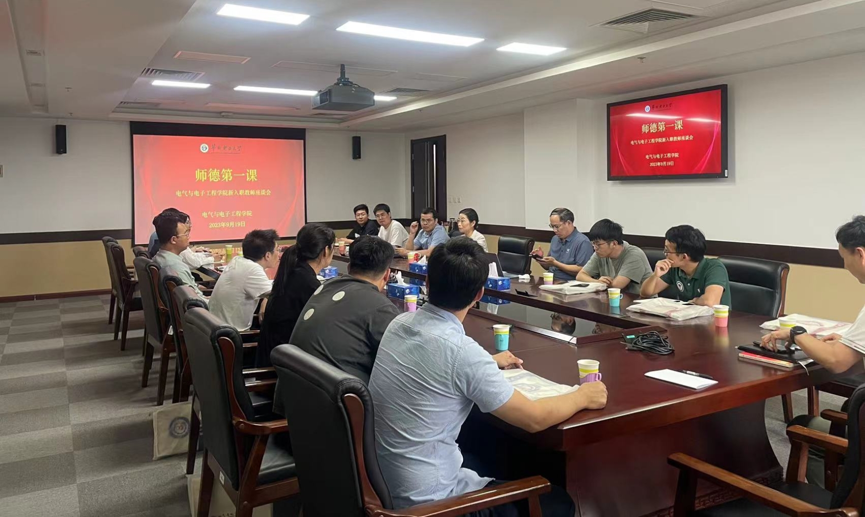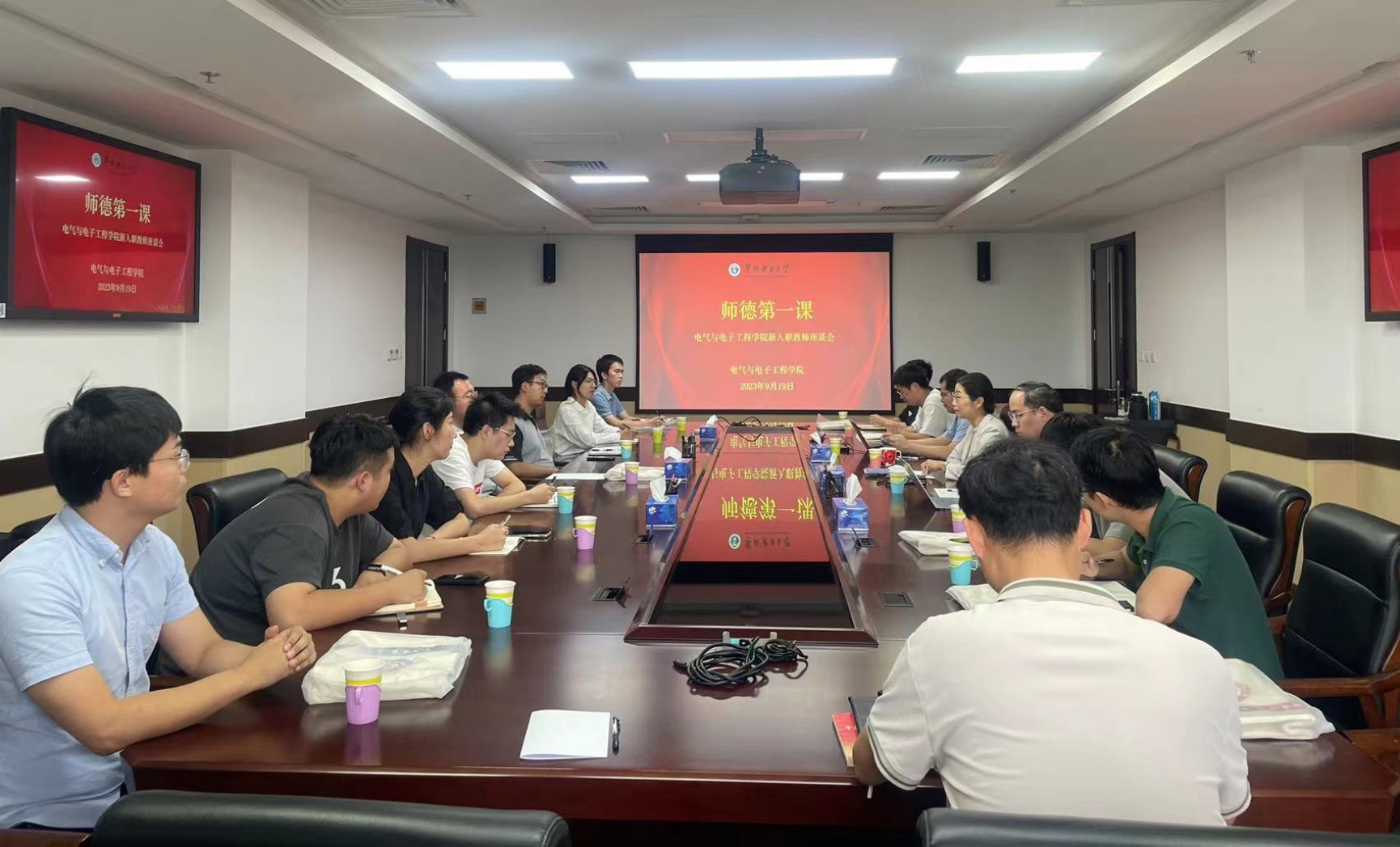 2023年9月19日下午,新浦金350vip官方召开新入职教师座谈会,学院党委书记卜春梅、副院长(主持工作)齐磊、副院长徐衍会共同为14位新入职教师上好“师德第一课”,学院党政办公室主任刘春磊参加。